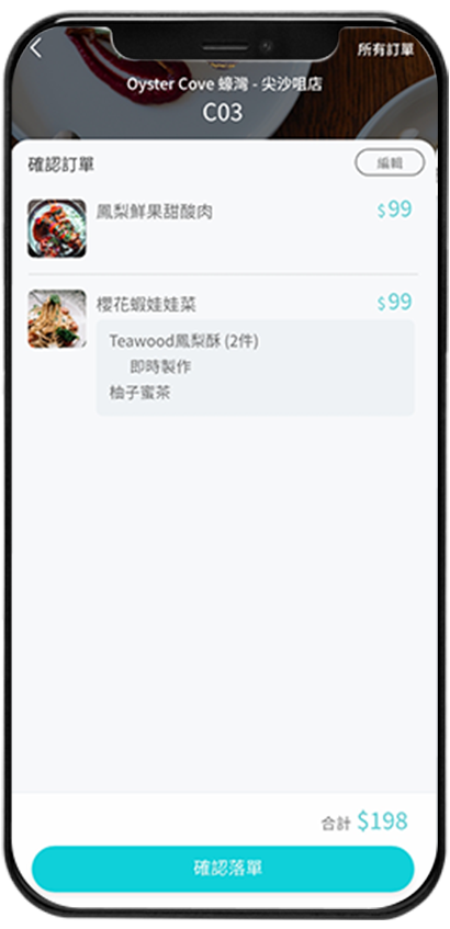 顯示不同的食品類別、名稱及選項, 甚至選擇不同套餐, 如對食物有特別要求都可以在點餐時提出。 前台員工方面, 可以查看點餐記錄,或者應客人個別要求為他們修改菜式。 當結帳時可以直接選取指定座位快速結帳。