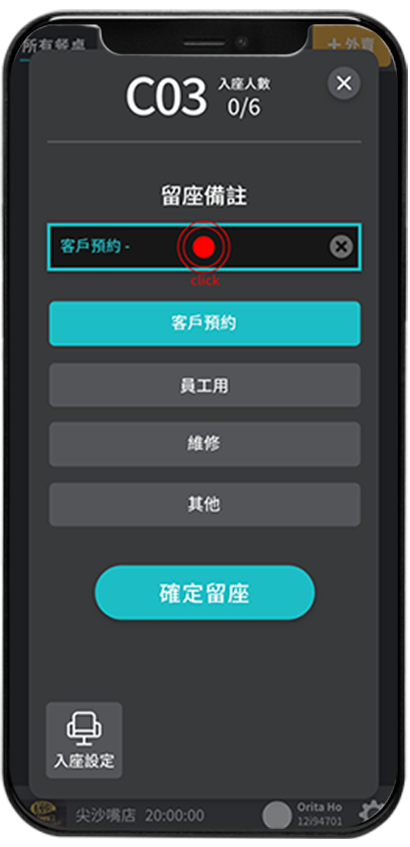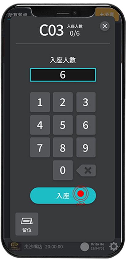 在入座時可以輸入客人數量,並即時查看位置情況,為客人分配座位及安排搭枱