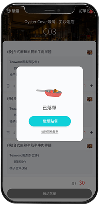 客人完成用餐後可以直接選取指定座位快速結帳, 整個過程簡單快捷。